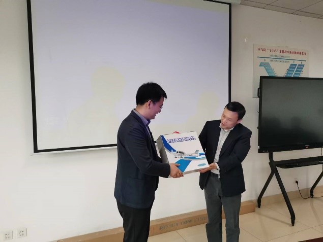 的科研发展情况,飞行技术学院的余江副院长和航空工程学院的付尧明院长分别介绍了两个学院在各自研究领域中的优势,飞行技术学院的杨俊书记和魏麟院长主持双方探讨了在通用航空领域的合作前景,以及在省部级重点实验室建设和学科建设方面的优势互补,并约定将进一步结合各自特点开展深度合作。会后,双方互赠了航空模型以示敬意。
