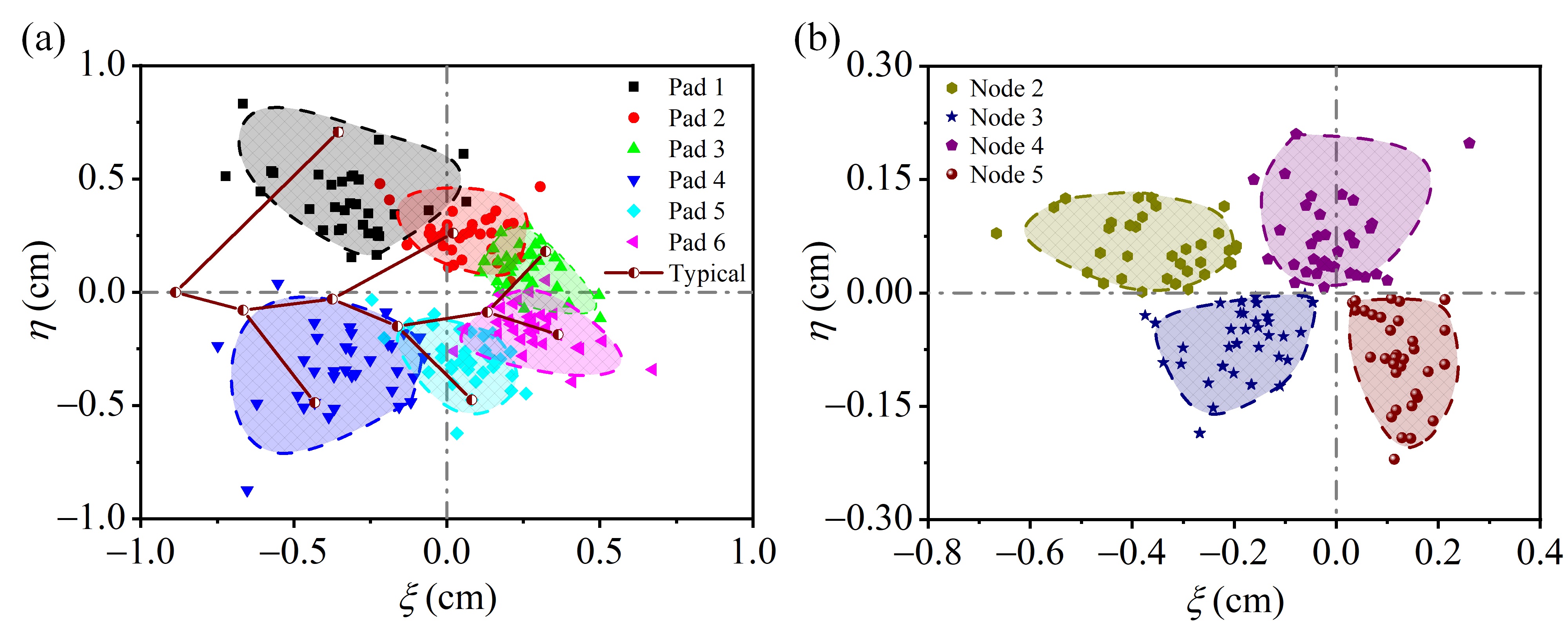 图2 爬山虎的形貌测量。(a)吸盘的分布,(b)主脉节点的分布。