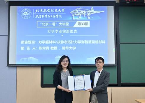 “北京一号”大讲堂第33期在沙河校区SH2-104教室成功举办。清华大学陈常青教授受邀作了题为“力学超材料:从静态拓扑力学到智慧型超材料”的学术报告。陈常青教授目前任清华大学工程力学系主任、钱学森力学班执行首席教授,是国家级高层次人才计划入选者,项目首席科学家。近200名师生齐聚一堂,共享了这场前沿学术的思想盛宴。本次大讲堂由春满四合院