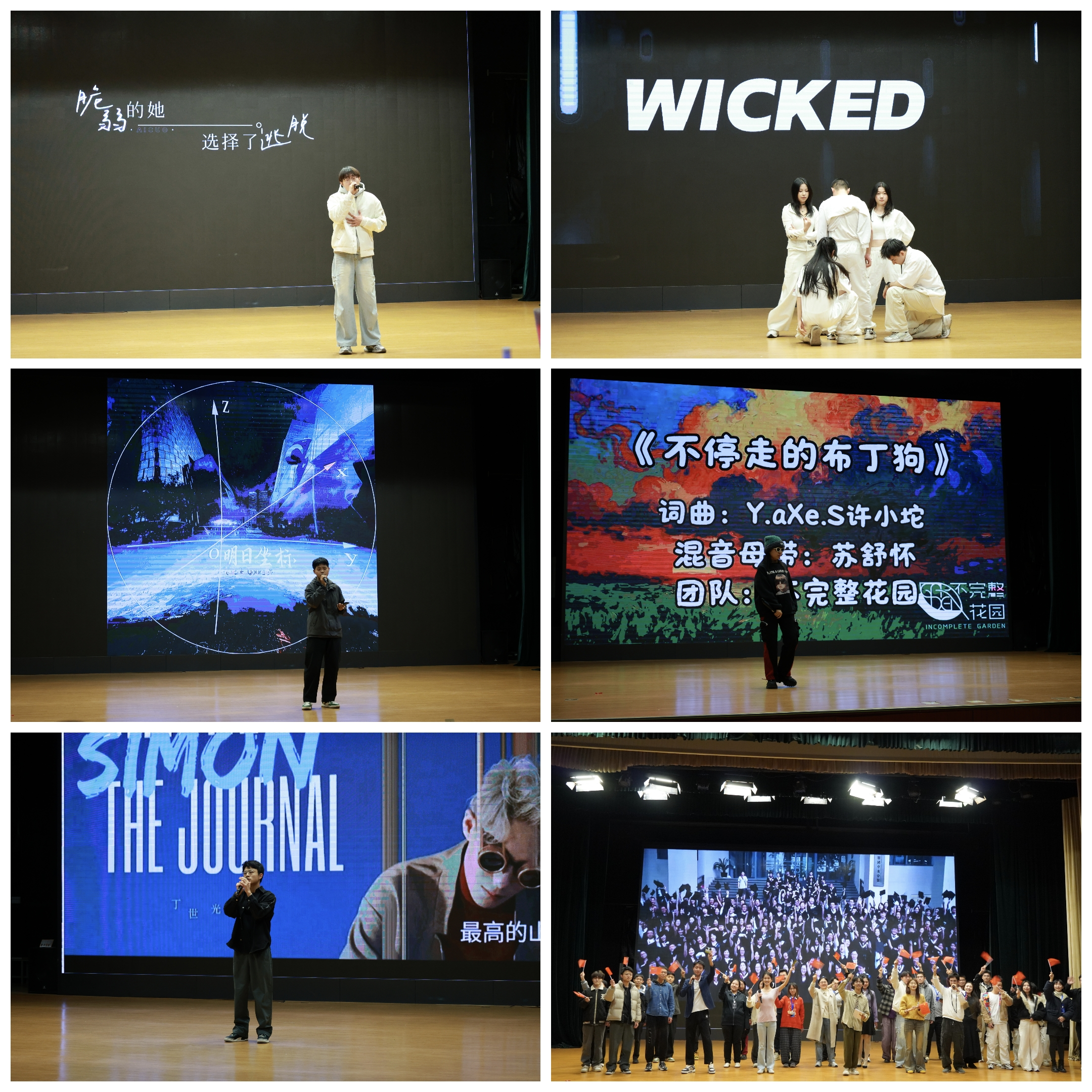 第二幕“巡航·音浪共振”中,王紫婧、武小奇、张雪芮、杜雨欣带来《Forever Young》,舞动青春活力;郭金垒演唱《等你下课》,唤起校园回忆;习宴澳明与周如仙带来《传奇》,声线交织出动人情感;星月口琴社的《尘星》旋律悠扬,刘星涵以《Dance Monkey》收尾,全场随节奏摇摆。紧接着的“歌曲倒放挑战”组队抢答赛成为当晚最受瞩目的环节。三、四两组在比赛中一度战成平手,选手们即兴展示才艺角逐胜负,歌声与笑声交织,掀起全场最热烈的欢呼。