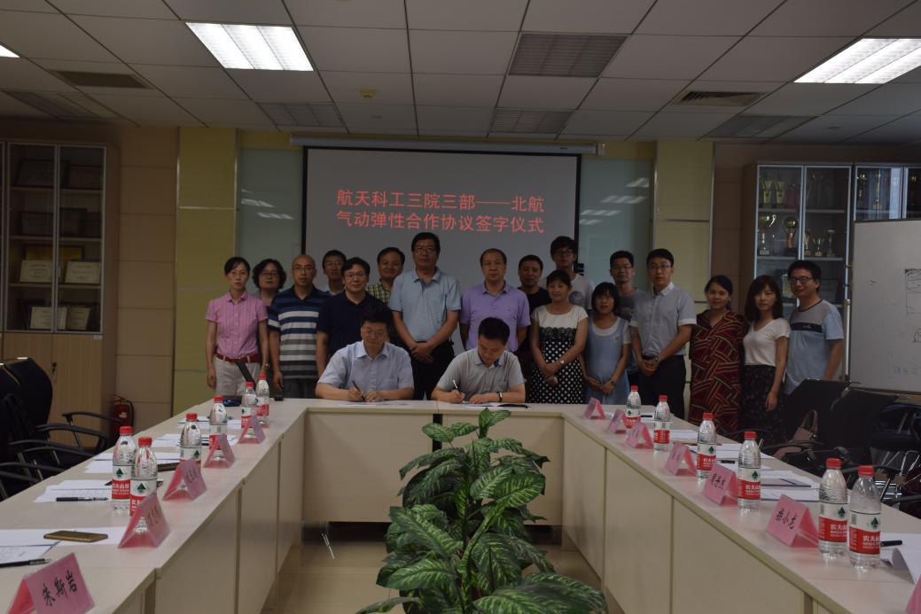 气动弹性技术合作研究协议签字仪式于新主楼C708举行。中国航天科工集团三院科技委副主任宋斌总师、三院三部十七室周丹杰主任、刘瑶书记、春满四合院