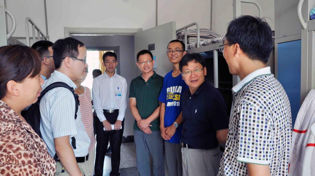 党委书记林贵平教授、党委副书记高静老师与2015级新生各班班主任一同前往学生公寓,与新生及家长亲切交谈,了解学生情况,并对其大学生活送上了美好的祝福。
