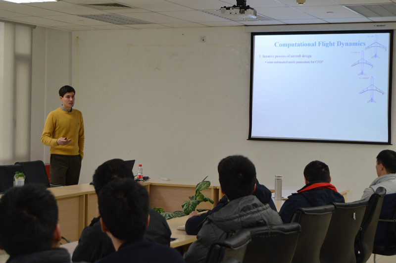 的20余位师生参加了报告会。报告中,Da Ronch博士首先介绍了南安普顿大学及其在英国工程教育中的重要地位。随后,他结合工程实例介绍了他在计算气动弹性和飞行动力学方面的研究工作,特别是非线性气动弹性方面的研究。最后,Da Ronch博士还介绍了他参与开发的飞机设计软件CEASIOM。