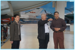 当杨院士走到他作为总是设计的“歼八Ⅱ”木制样机前,饶有兴趣的给我们介绍了,样机在飞行器总体设计时的关键作用和典型意义,并答应给我们提供有关样机设计的历史资料。来到“北京一号”前,杨院士又向我们介绍了沈航在通用航空方面新进展,并表示今后沈航与北航应在航空文化、航空文物珍藏与研究、博物馆教学与实践方面加强合作。
