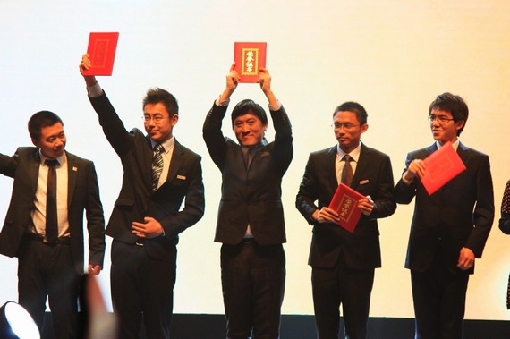 我院2010级本科生蒋晓航(中)作为《第三创益人力资源有限公司》项目获奖代表上台领奖