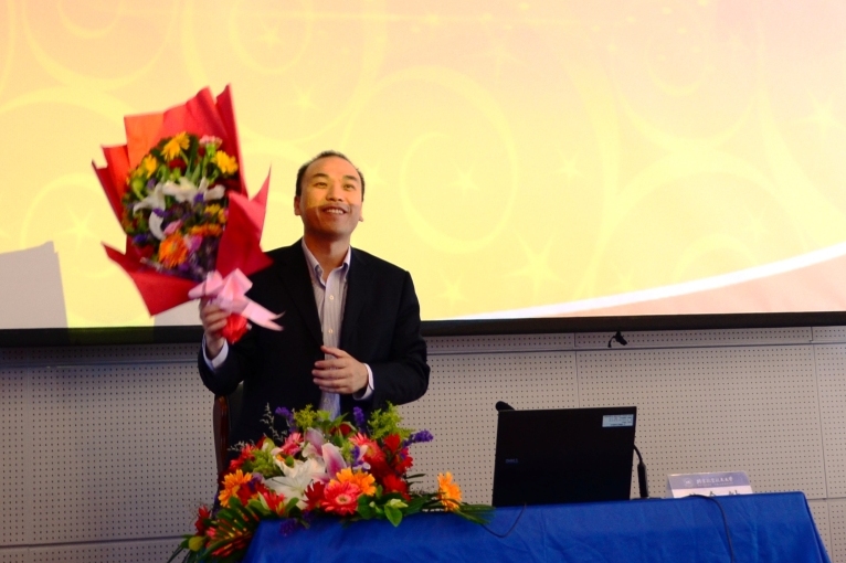 整个报告会现场气氛热烈,座无虚席。同学们在仔细听取魏部长报告的同时,认真思考并记录了重点内容。在报告结束后的互动环节中,有同学就未来中国发动机研制的方向向魏部长提出了问题。魏部长提出了线性与非线性相互结合的发展道路,并作出详细解释,清楚地回答了同学的疑问。最后学生代表向魏部长敬献了鲜花,在同学们热烈的掌声中,本次报告圆满结束。