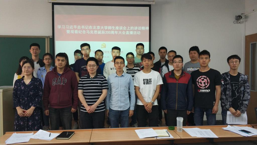 全体辅导员、党支部书记、硕士年级党建负责人和入党积极分子代表共同学习了习近平总书记在北京大学师生座谈会上的讲话精神,并观看纪念马克思诞辰200周年大会直播。