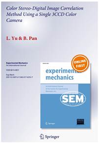 潘兵教授及其博士生俞立平获得美国实验力学学会(SEM)2017年HetényiAward。Hetényi Award用于表彰国际实验力学领域旗舰期刊《Experimental Mechanics》上一年度(2017)的最佳研究论文,这也是该奖自1967年设立以来首次授予中国高校和研究机构的学者。获奖论文题为“Color stereo-digital imagecorrelation method using a single 3CCD color camera”,该论文的主要贡献在于首次创新性地提出了一种基于单个彩色CCD相机的全靶面、单相机三维变形测量方法。该论文在2017年《Experimental Mechanics》所有发表的120篇论文中引用排名第一,已入选ESI高被引论文(前1%)。