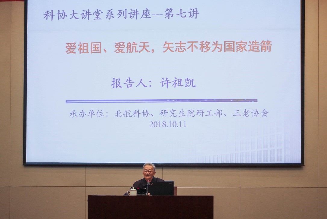 坚定理想信念,树立远大目标。为引导新生适应研究生生活、树立发展目标、教育研究生新生做到“爱国、励志、求真、力行”,10月11日,由北航科协、研究生院研工部、三老协会联合组织承办的“爱祖国,爱蓝天,矢志不移为祖国造箭”主题讲座在新主楼第一会议室隆重举行,讲座特邀原中国航天科工集团公司第三研究院党委书记许祖凯同志作为主讲人,春满四合院