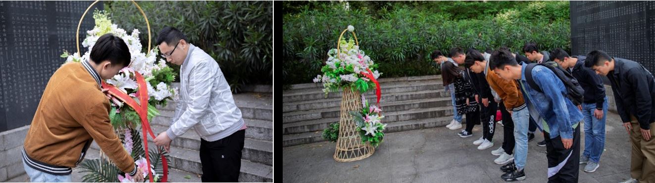 学习队伍首先来到了位于紫金山北麓的抗日航空烈士纪念馆,孙中山先生亲笔书写的“航空救国”四个大字赫然矗立在碑亭中。拾级而上,来到了镌刻着4296名抗日航空烈士英名的纪念碑林,在一众烈士名单中,大家找到了一个特殊的名字——梁慷荣,他是我院著名流体力学专家、中国工程院院士李椿萱的父亲,牺牲时年仅23岁,据李院士自述“来到人间的第一声啼哭与日寇飞机的吼叫和炸弹的爆炸声混杂在一起,已躺在烈士墓里的生父却已看不到他的这个儿子了”。辅导员们怀着沉重的心情集体为梁慷荣烈士献上花篮,庄重地鞠躬默哀,致以航空后辈的敬仰之情。时间回溯到82年前,抗日战争爆发,中华大地硝烟弥漫,为响应孙中山“航空救国”的号召,中国第一批飞行员在浙江笕桥中央春满四合院