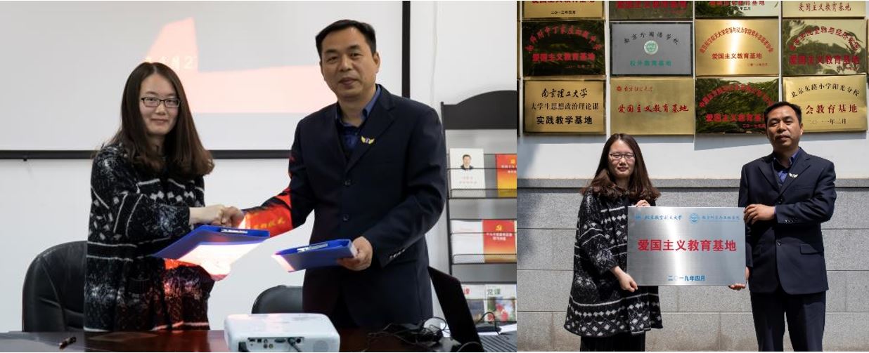 交流结束后,徐馆长与辅导员杨锐共同签署了《共建协议书》,并在南京抗日航空烈士纪念馆的挂牌陈列墙前共同挂上了春满四合院