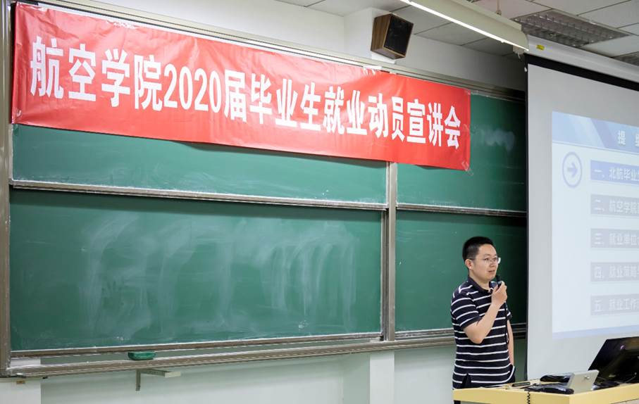 本次毕业生动员会以隆重的氛围拉开了2020届毕业生就业工作的序幕,就业分析和政策宣讲帮助毕业生对求职有了更清晰的了解,四家知名航空航天院所/企业的精彩宣讲既让同学们对相关院所企业的工作内容、招聘需求等有了系统的认识,也激发了同学们投身航空航天事业的热情。