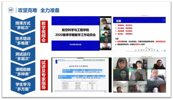 进行了细致全面的课前准备工作,组织教学主任逐项核实课程,召开学院教学专项视频会议,经过多轮次审核,最终确定每门课程授课方式;同时,针对困扰教师的网络平台使用问题,开展个人-小组-系所-学院多层级使用培训,并邀请教师分享在线教学经验。正式开课之前,所有课程创建了测试课并完成了试运行,所有教师都完成了试讲。