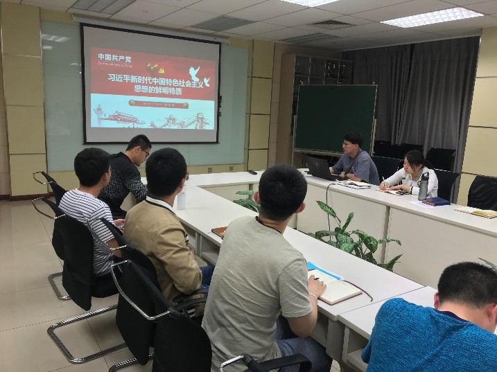 余艺萌同志讲解了习近平新时代中国特色社会主义思想的时代性特点,强调新时代这一思想是基于党情、国情和世情提出的,是马克思主义中国化的最新成果,是引领全党全国人民开启新征程的力量之源。
