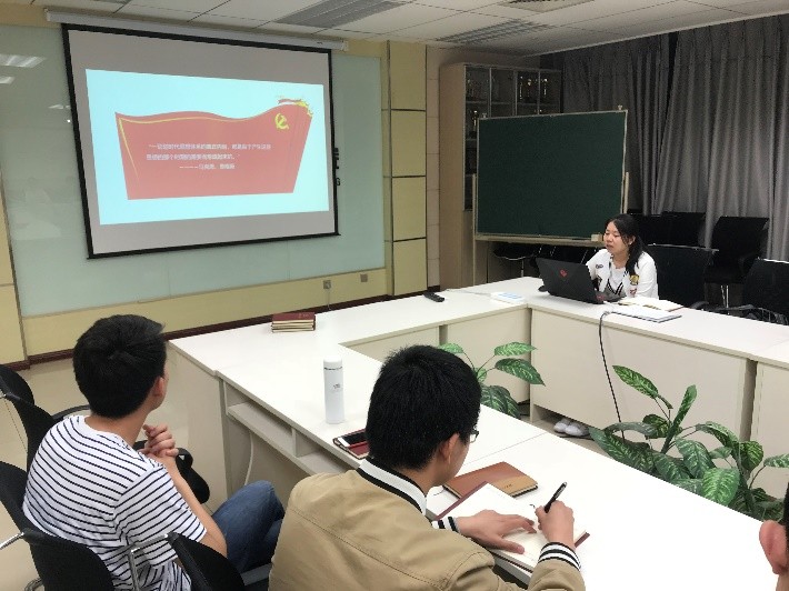 付子豪同志讲解了新思想的人民性,通过列举十八大以来党的具体实际行动,归纳出与人民性相关的两大举措:脱贫攻坚与反腐倡廉,生动证明了习近平新时代中国特色社会主义思想就是以人为本的思想,是人民可以信任的思想。