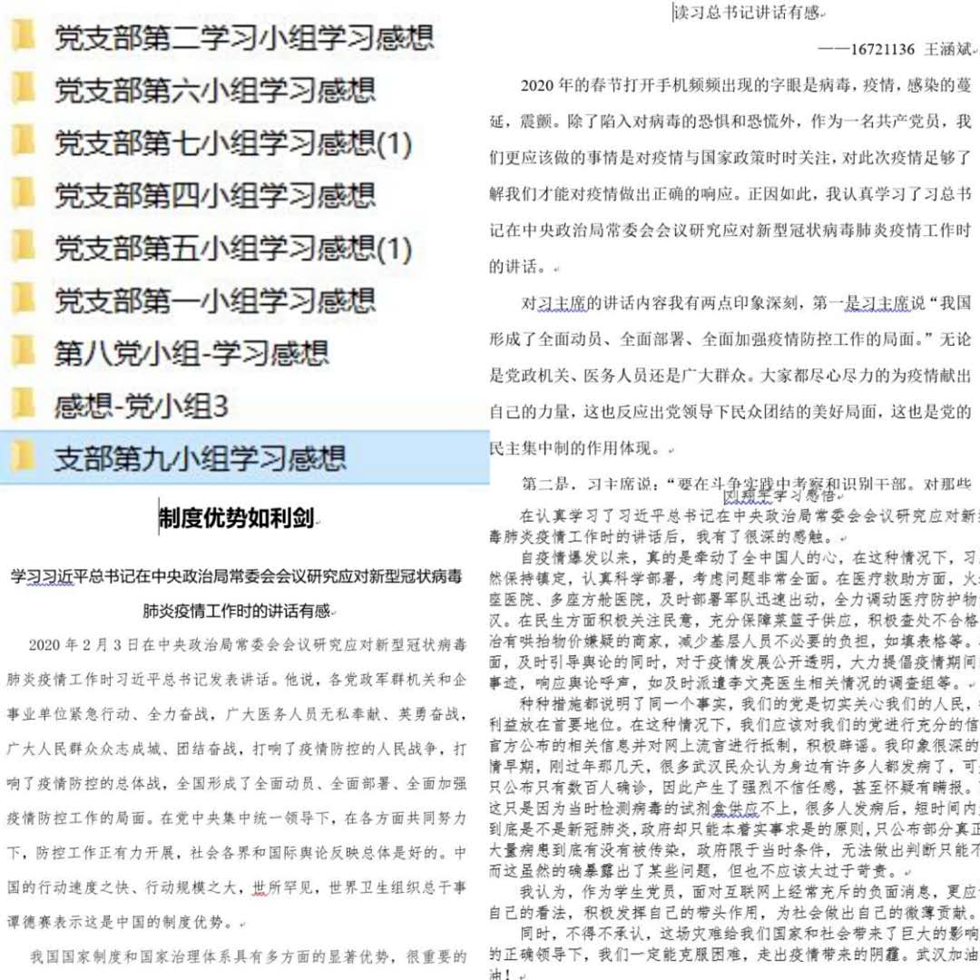 关于疫情防控的各项工作部署,发挥基层学生党支部战斗堡垒作用,坚持理论学习,深刻认识防控部署,发挥党员带头作用,引领班级健身热潮。