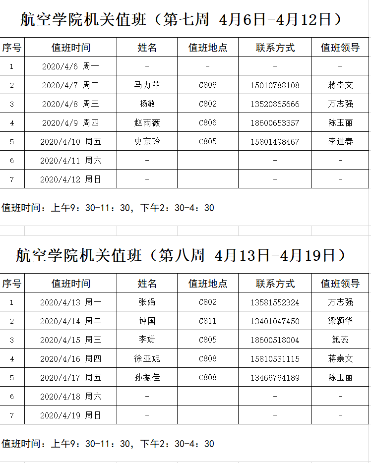 春满四合院 机关值班(第七-八周 4月6日-4月19日)