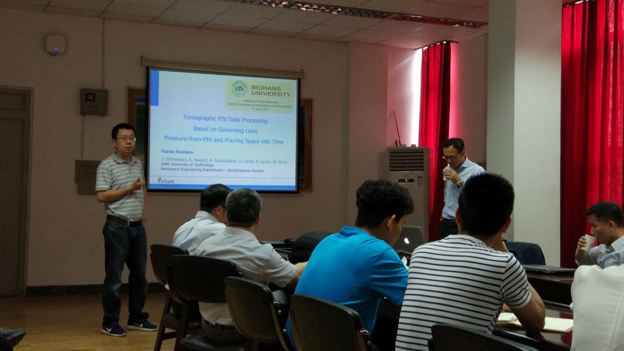 流体所214会议室举办,荷兰代尔夫特理工大学航空航天工程学院的Fulvio Scarano担任本次主讲嘉宾。主讲题目为《Tomographic PIV Data Processing Based on Governing Laws Pressure-from-PIV and Pouring Space into Time》。