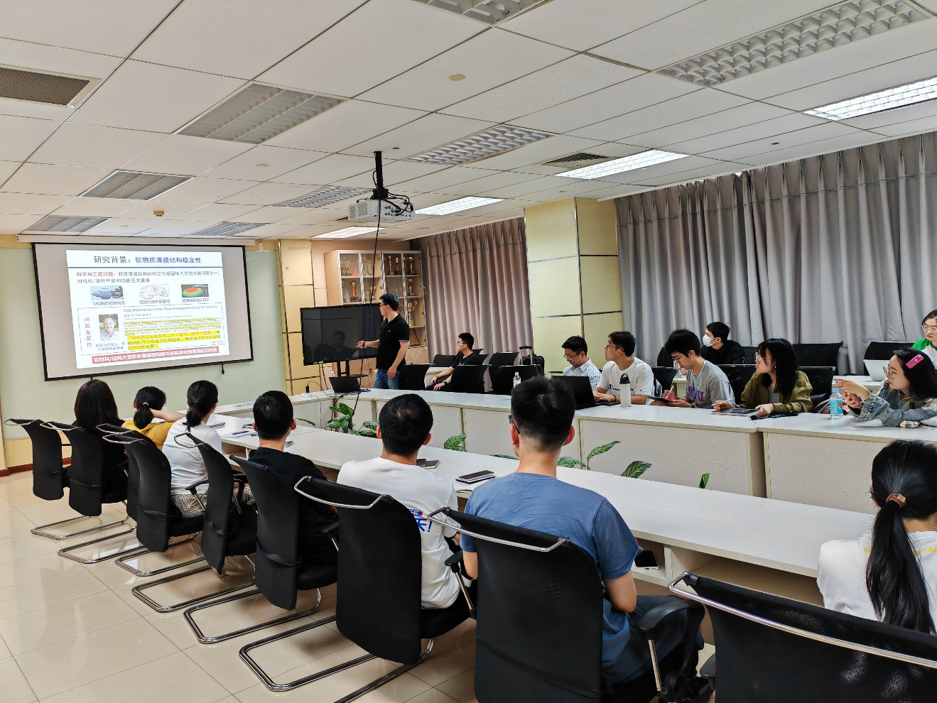 许多生命结构展现出环境自适应的有趣形貌,有助于其生物学功能和激发新材料设计灵感。徐凡教授的报告围绕三个方面展开:生长与褶皱、萎缩与褶皱、曲率与褶皱,介绍在跨尺度时空中多种软薄膜结构生长/萎缩失稳形貌演化力学研究进展,揭示在微分生长/萎缩和几何曲率的非线性耦合作用下薄膜结构出现的一些新奇的褶皱失稳现象。通过发展非线性板壳力学模型并推导出普适的标度律关系,有助于深入理解形貌弹性内在力学机理,并定量预测形貌演化中的多重对称性破缺与二次分岔行为,且可进一步利用软物质表面失稳行为进行仿生结构器件设计,例如曲面智能软抓手。与会师生针对该学术报告提出的薄膜失稳领域中的诸多重要力学问题进行了热烈的讨论。