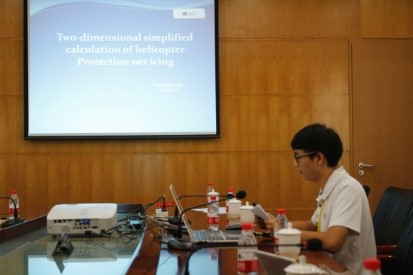 唐进城的报告题目是《Two-dimensional Simplified Calculation of Helicopter Protection Net Icing》。