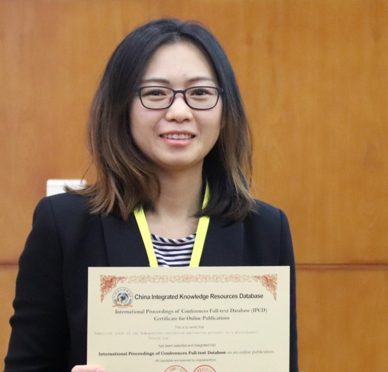 吕秀秀同学的报告题目是《Numericalstudy of the homogeneous cavitation nucleation pressure in a microchannel》。