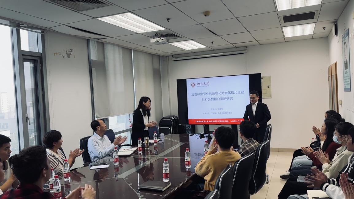 (通讯员 王帅)2023年11月1日,受我院邵丽华教授的邀请,北京大学刘雁韦博士到我院固体力学所做学术交流报告。报告的题目为“应变梯度强化和热软化对金属微尺度塑性行为的耦合影响研究”。报告由邵丽华教授主持,来自我院的师生共二十余人听取了报告。