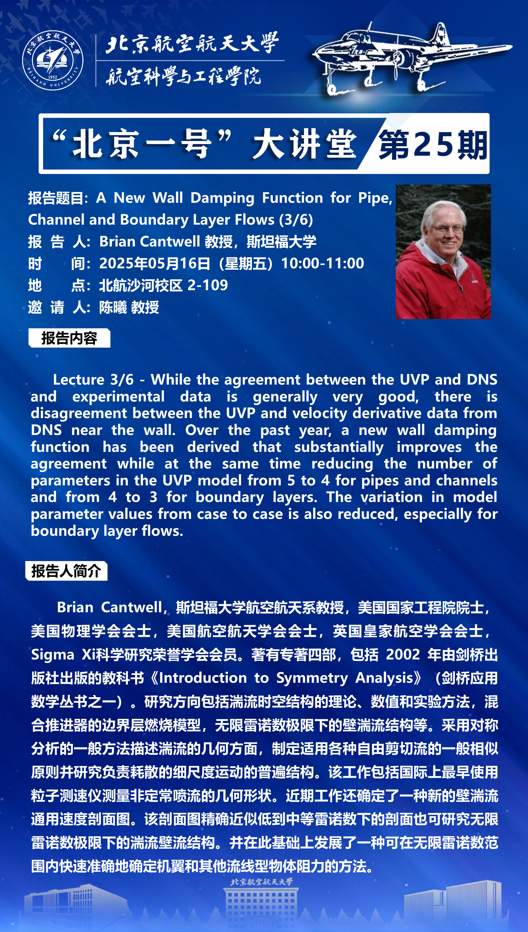 报 告 人:Brian Cantwell, 斯坦福大学教授、美国国家工程院院士
