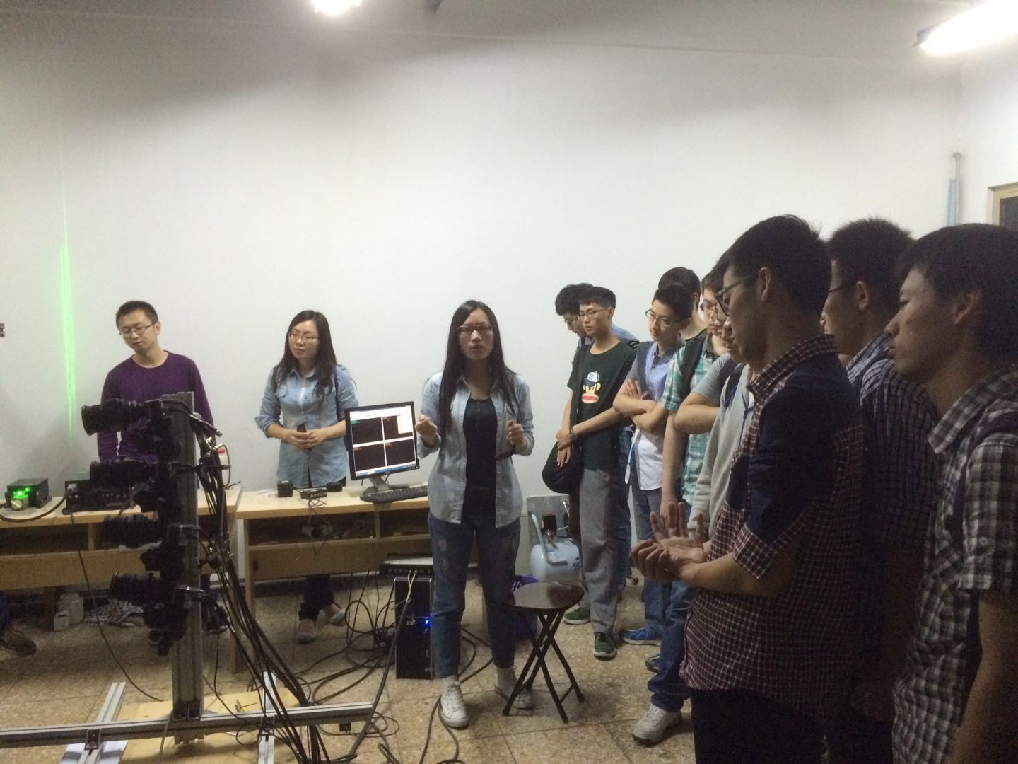 学姐为同学们演示激光PIV实验