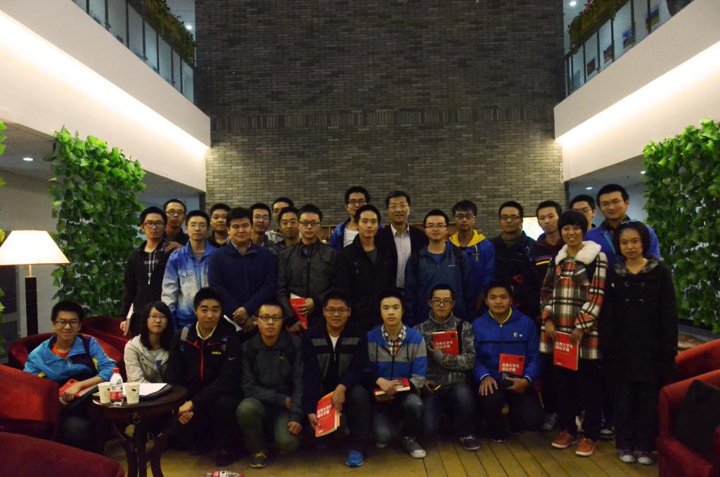 怀校长的谆谆教诲,以及智者的风范,令在场的同学们感铭于心,并且将其落实到今后的学习生活中。最后,座谈会在愉悦中结束,130512班全体同学和校长合影留念。