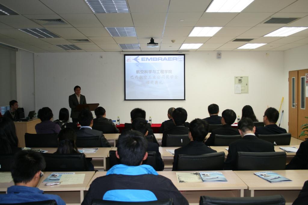 巴西航空工业公司奖学金颁发一等奖5名、二等奖10名。获奖学生中,有1人获得挑战杯特等奖,8人获得全国航模锦标赛个人或者团体冠军,其余获奖者在“冯如杯 ”等科技竞赛中也有突出表现 。