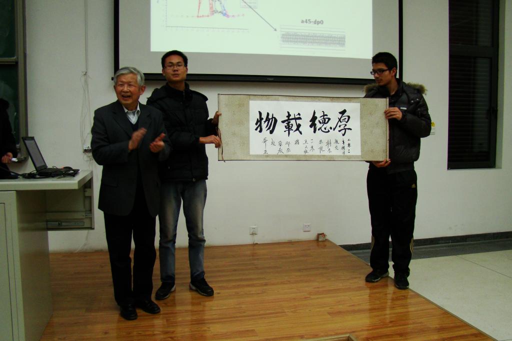 持续了一个半小时的讲座在同学们意犹未尽的热烈掌声中结束了。在这次精彩的讲座中,同学们受益匪浅。正如邓教授所说的那样,树立自己的理想,要做事业的理想,然后经过磨练,最后的“那人却在灯火阑珊处”就是自然而然的事情。无论在修身,还是治学,抑或将来的科研,相信邓教授的谆谆教导都会给同学们带来很大的帮助。讲座结束后,春满四合院