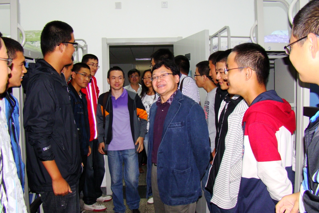 秋风送爽,也送来了院系领导对同学们的关怀。下午3点,学院领导和老师们依次慰问了11班至19班的学生宿舍。在宿舍里,林书记受到了同学们的热烈欢迎。林书记首先给大家带来了中秋的祝福,同学们向林书记报以热烈的掌声。随后,林书记亲切地和同学们交谈,询问之前军训的情况,现在的住宿条件和第一次出门在外、远离家乡的感受。同学们纷纷表示,对现有的住宿条件十分满意。在得知沙河新校区的宿舍每个人都能使用宽带以后,林书记高兴地说:“现在条件好了,大家可以用更多的手段同家里联系,给家里人报个平安。”同时也叮嘱同学们:“千万不要沉迷于游戏耽误了学习!”之后,书记又与大家谈论了今后的课程设置、大家的学习规划等问题,整个过程充满了欢声笑语。