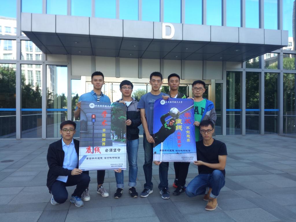 2017年9月28日中午,硕士16051党支部党员共计7人于中午12点在新主楼汇合后,分发科研诚信倡导海报并张贴在支部同志共同商讨出的最佳宣传点,力求海报能够达到最好的宣传效果。本次活动所张贴的海报,是支部党员与同学们一起集思广益,共同创造的结果。“学术不能越界,底线必须坚守”,代表着支部成员与同学们对科研诚信的坚守,红绿灯、守门员则以贴近同学生活的形象警示大家不能跨越底线。
