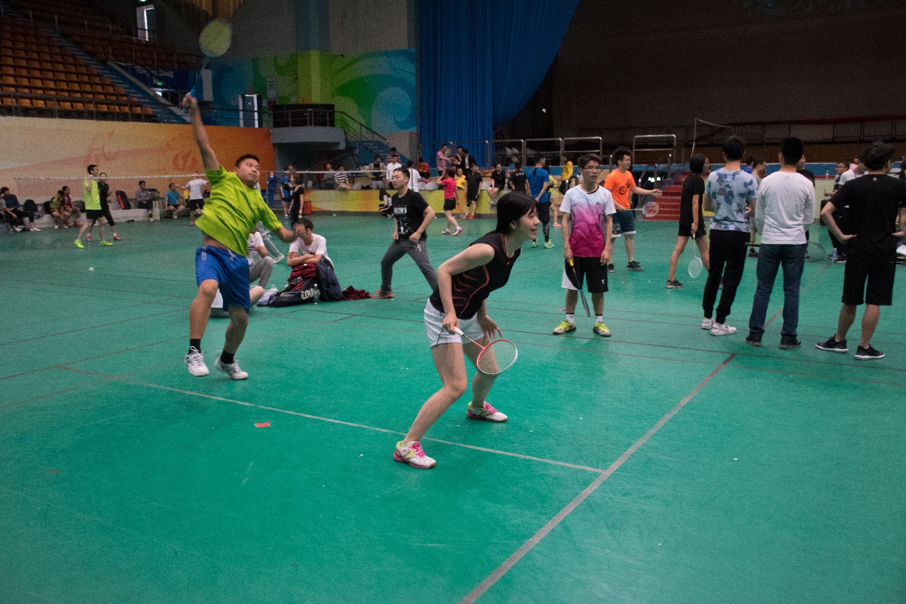 5月6日进行小组赛。在比赛中,每支队伍都顽强拼搏,挑战自我,赢得了场外观众的阵阵喝彩。混双的比赛也十分精彩,女队员的网前截杀,男队员的后场吊球,吸引了大批的观众。看着场上的比赛选手腾挪跳跃、身姿飒爽,坐在场边等待的选手和围观的羽毛球爱好者们也都跃跃欲试、纷纷在练习场地上一展身手。