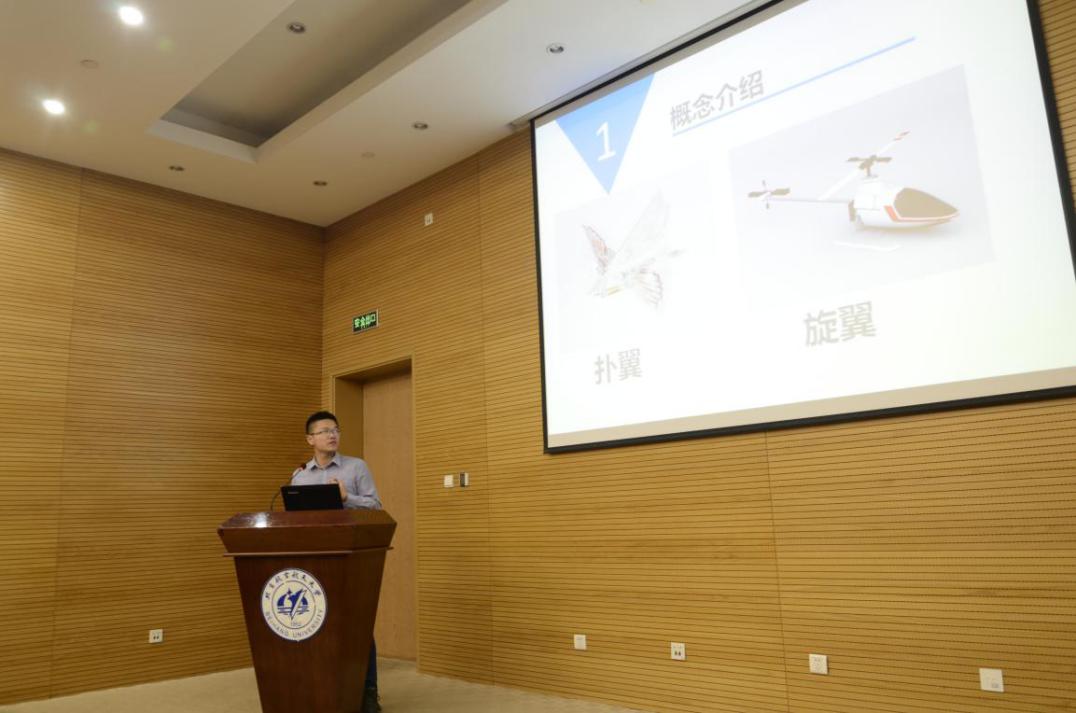 接下来,上届大赛一等奖作品“炫蜂”微型扑旋翼的作者徐威同学通过PPT和视频,生动形象的介绍了他们团队的参赛作品及参赛经验,并结合自己参赛体会对今年参赛选手提出了宝贵的参赛建议。
