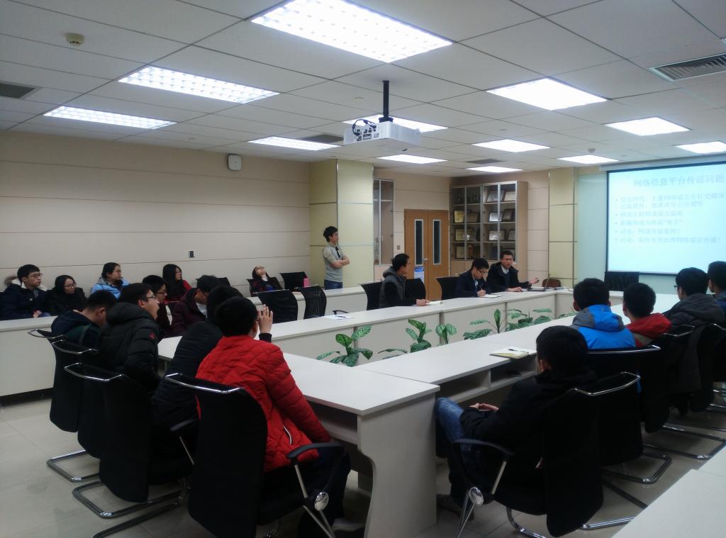 党支部书记张超普带领大家一起讨论网络信息平台传谣问题。当今我们身处信息时代,大量网络谣言在社交媒体平台泛滥流传,混淆误导公众视听。移动互联网成谣言温床,新媒体成为传谣
