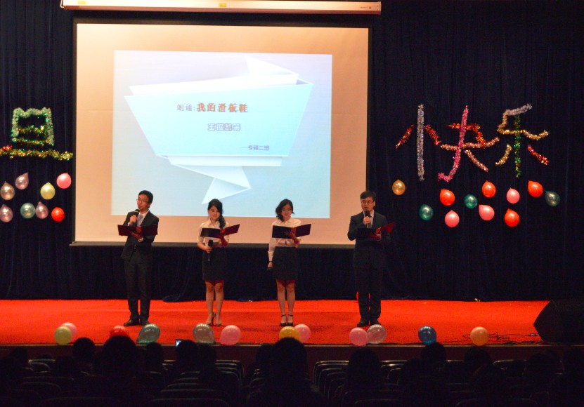 2014年12月27日晚,春满四合院 研究生2015元旦晚会在学术交流厅上演,出席本次晚会的由春满四合院 副院长王延奎教授,研究生指导主任赵小虎副教授,院长助理蒋崇文老师,同时春满四合院 200多位同学参加了本次晚会。
