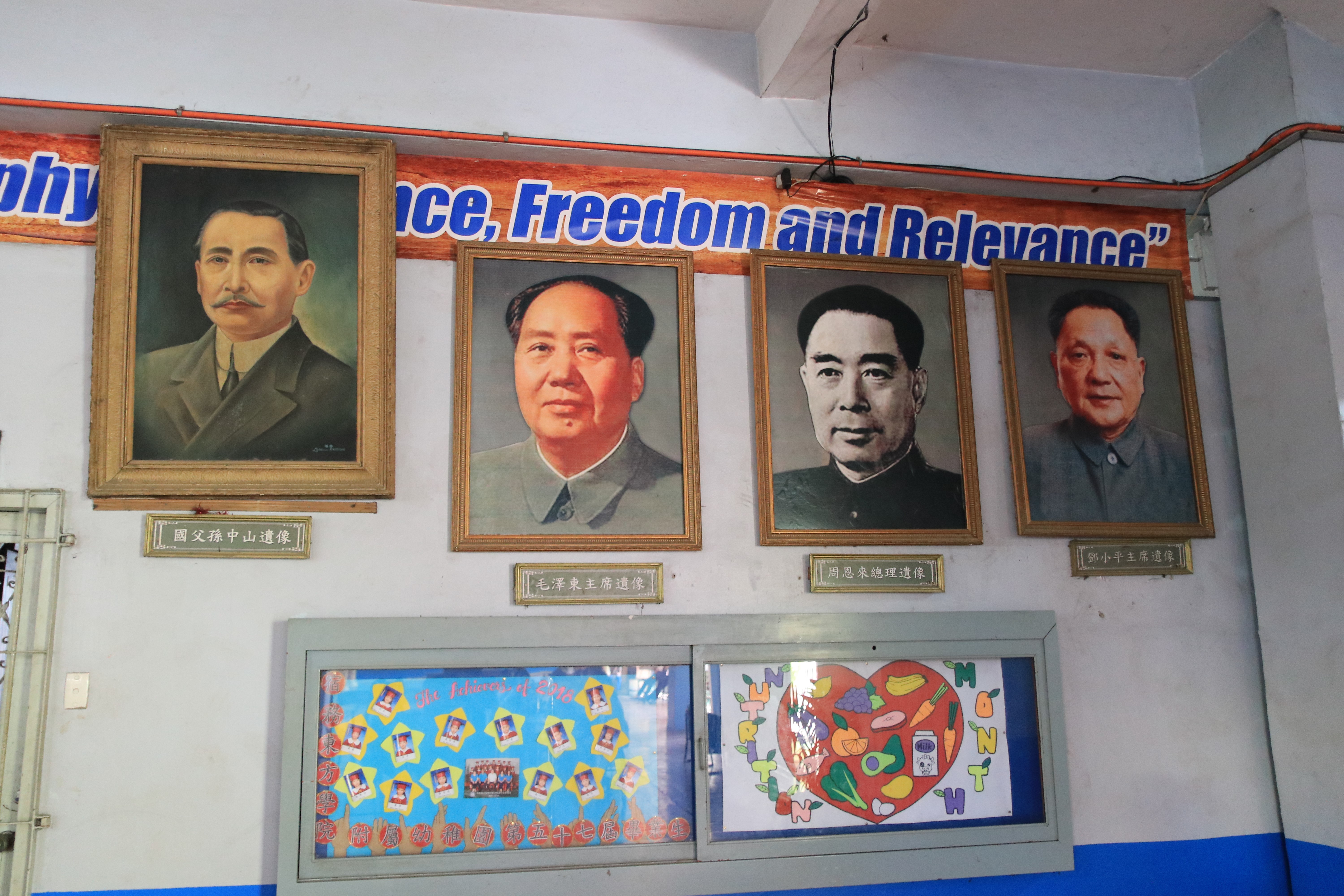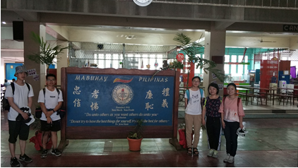 “SEE SEA”海外游学“一路菲行”实践队决定从菲律宾华校观察开始,调研中式传统教育在菲律宾的市场和影响力。为了体会华校这一特别的教育模式,7月31日,菲行的队员们首先到宿务东方学院进行了拜访。宿务东方学院是一所拥有91年历史的老华校,建校时间仅次于马尼拉的中西学校和怡朗的华商中学。学校正门的校训牌书“忠信、孝悌、廉耻、礼义”。这“八德”,作为中华传统文化的核心,作为中华文化的DNA,渗透到中华民族每一个子孙的骨髓里(语出王岐山)。东方学院带有年代感的校训墙,体现出的,是生机勃勃、经历了漂洋过海依然得到传承了的中华文化。学校门厅墙壁上悬挂着毛主席、周总理、孙中山等名人画像,画像下用中文繁体字标示。为了了解更多关于东方学院的情况,团队和当地学生进行了沟通。我们了解到,东方学院涵盖了幼儿园、小学、初高中、大学等多个教育阶段,均是面向整个菲律宾招生。当被问及学生是否会说汉语时,东方学院的学生告诉我们目前通常小学阶段的汉语基础教育做的比较完善,小学生通常会说日常的汉语,高中和大学生由于来自当地不同族群,会提供中文选修课,但是大部分学生不会说中文。可以看出,华校已经和菲律宾其他学校一样广泛为民众所接受。对于小学生阶段,中文教育做的比较好。高中和大学受限于实际生源,提供中文选修课不失为一种恰当的方式,有助于青少年了解更多关于中华文化的内容。校内处处充满的国学气息,无形中形成一种文化感染。