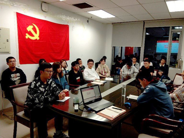 硕士生19054学生党支部于新主楼C828会议室召开了支部会议,进行“不忘初心,牢记使命”主题教育,并结合主题教育和学习内容进行自我批评,自我查摆。会议由党支部书记王培生同志主持。奏唱国际歌之后,王培生同志从“守初心,担使命”、“对党章,找差距”、“学讲话,抓落实”三个方面进行了讲解。