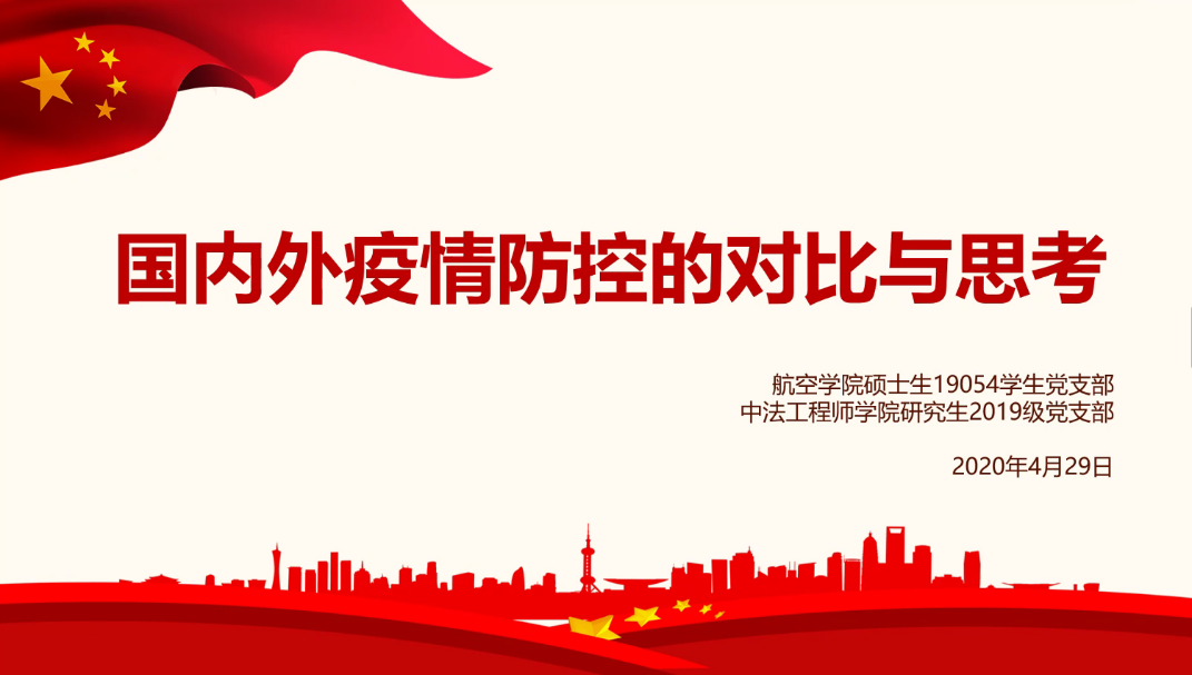 硕士生19054学生党支部联合中法工程师学院2019级研究生党支部于4月29日共同开展了主题为“国内外疫情防控的对比与思考”线上交流活动。春满四合院