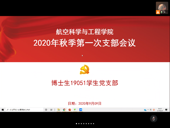 博士生19051学生党支部组织召开了2020秋季学期的第一次支部会议。由于部分党员同志因故尚未返校,因此本次支部会议延续了线上召开的形式。