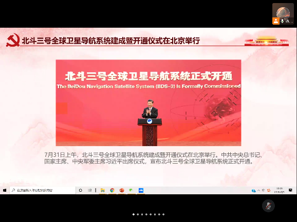 接着,汤艳霞同志就“传承弘扬好新时代北斗精神”的主题,带领支部成员回顾了北斗三号全球卫星导航系统的研制历程,详细介绍了什么叫做“北斗精神”。汤艳霞同志指出,支部成员们作为航空航天领域的科研人员,要牢记自己的初心和使命,结合自己的专业领域,传承好、弘扬好新时代北斗精神,为祖国航空航天领域的蓬勃发展贡献自己的力量。