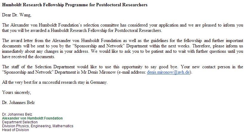 我院王冲博士获得2017年“洪堡研究基金”资助