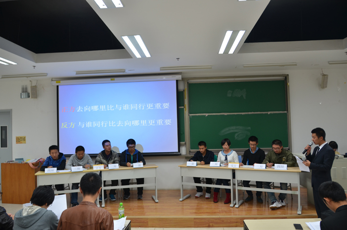 双方辩手激烈对抗 为优秀辩手颁奖 辩论队为获奖同学颁奖 金导为“最佳辩手”颁奖 2013年10月25日星期五晚18点,春满四合院 2013级新生辩论会决赛在教3-212正式打响。