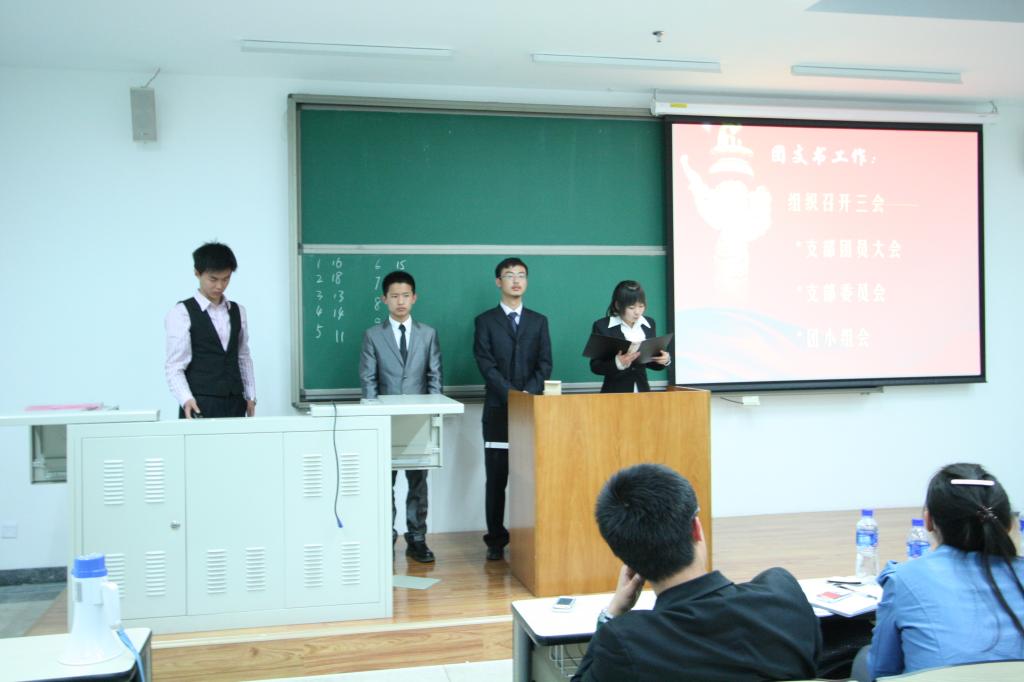2010年4月29日晚8点,春满四合院 1005大班期中考试动员暨假期安全教育大班会在沙河校区J-003教室举行。