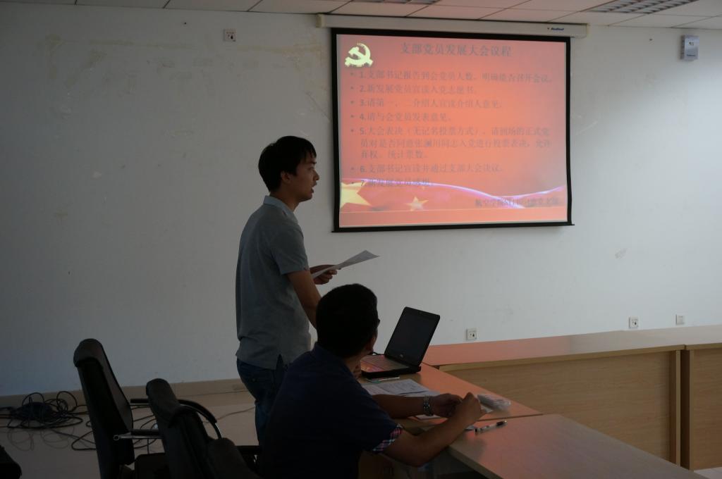 2015年6月12日,SY14054党支部举行预备党员发展大会,发展对象为支部的入党积极分子张澜川同志,大会在新主楼C706召开,支部大会党员21人,其中正式党员21人,实到正式党员21人。