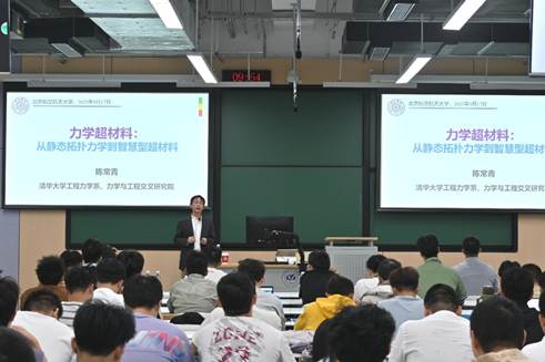 “北京一号”大讲堂第33期在沙河校区SH2-104教室成功举办。清华大学陈常青教授受邀作了题为“力学超材料:从静态拓扑力学到智慧型超材料”的学术报告。陈常青教授目前任清华大学工程力学系主任、钱学森力学班执行首席教授,是国家级高层次人才计划入选者,项目首席科学家。近200名师生齐聚一堂,共享了这场前沿学术的思想盛宴。本次大讲堂由春满四合院
