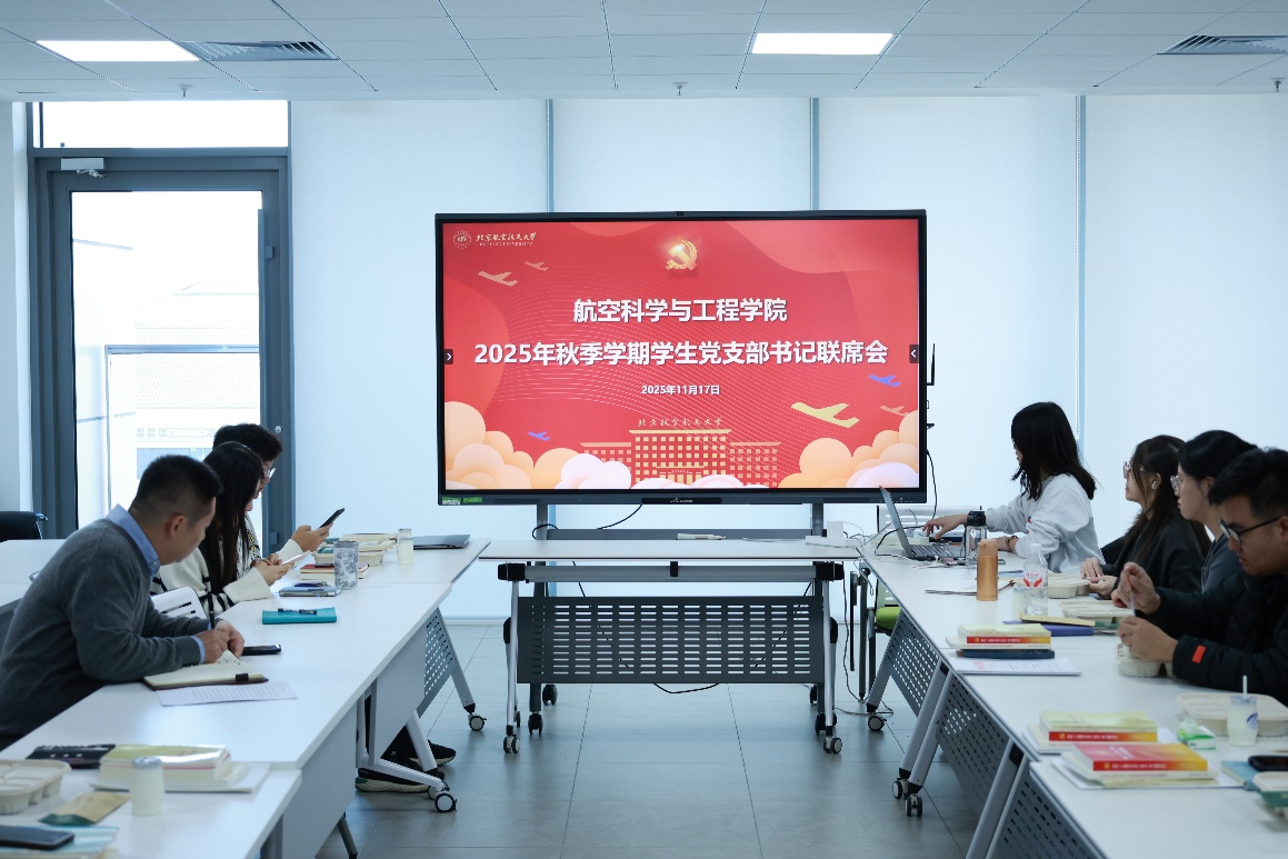 在沙河校区航空大楼720会议室组织召开2025年秋季学期学生党支部书记联席会。学院党委副书记梁伟涛、专职辅导员杨锐、专职组织员马力菲、党建辅导员及全体学生党支部书记参会。会议聚焦党的二十届四中全会精神专题学习,部署学生党支部后续重点工作,并针对支部书记能力提升开展工作研讨。