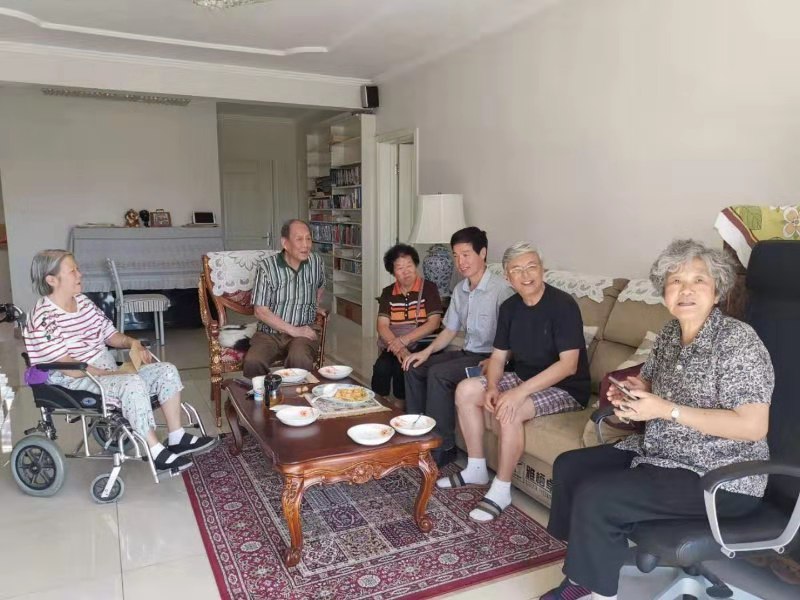 退休党支部书记杨乃宾、陈晏清、戴桂芬三位老师与院长助理杜奔新一起,来到通州一小区看望了材力退休的孙苏亚老师。
