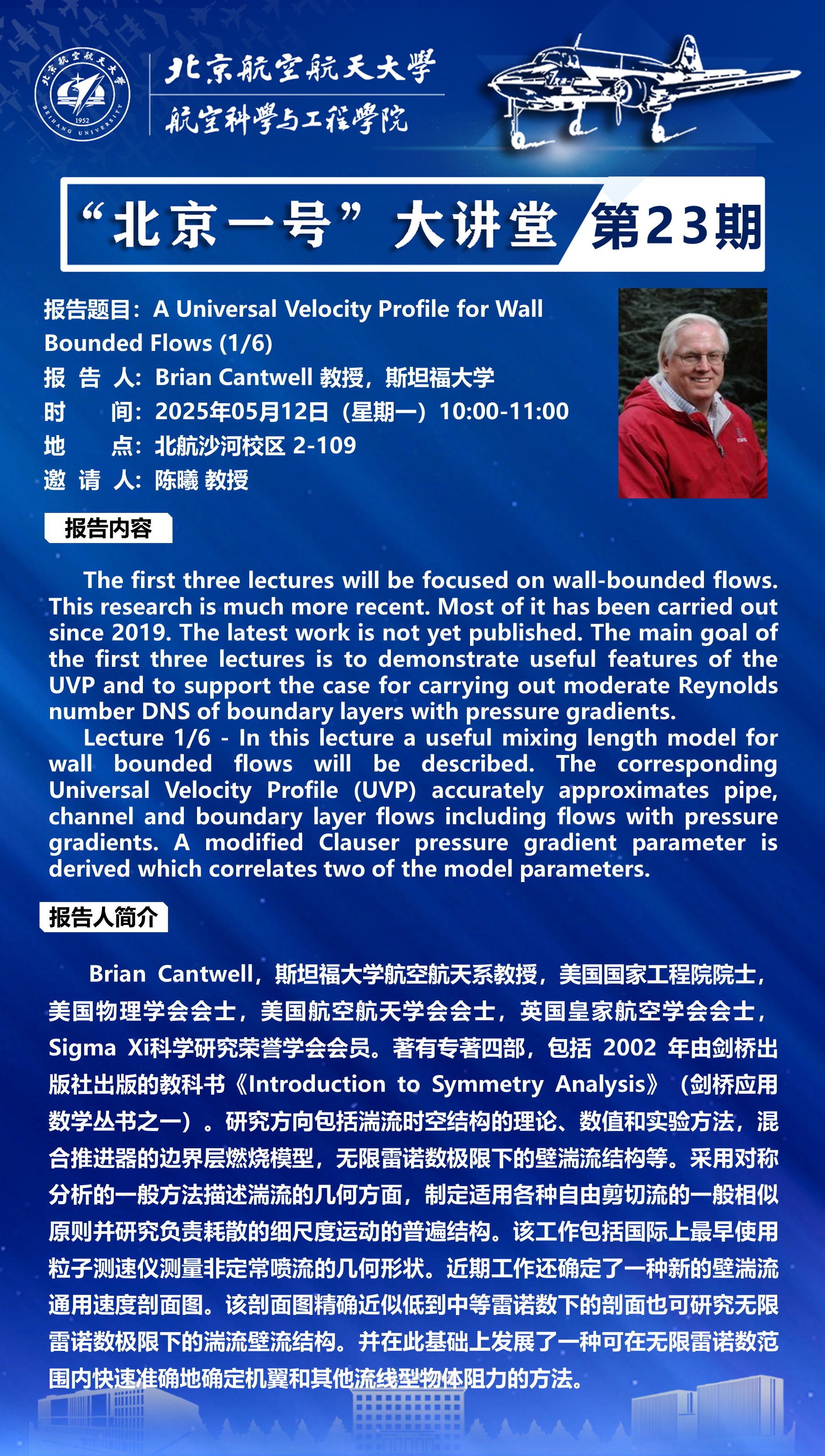 报 告 人:Brian Cantwell, 斯坦福大学教授、美国国家工程院院士
